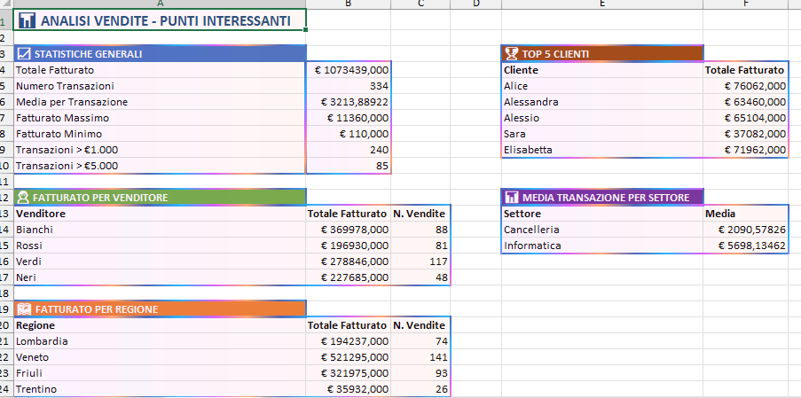 Il foglio mostra chi ha generato più fatturato e chi ha fatto più vendite