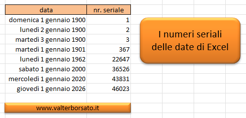 In Excel il 1/gennaio/1900 è rappresentato dal numero seriale