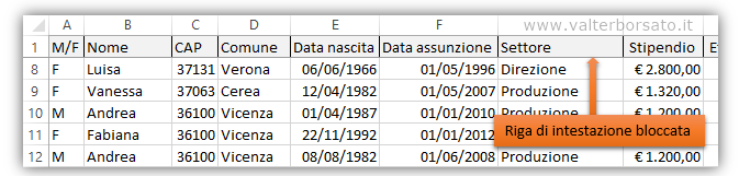 bloccare questa riga garantisce che, durante lo scorrimento verso il basso, i
