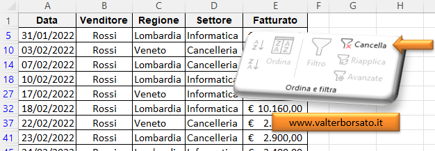 filtra cliccare su Cancella.