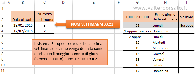 [2] - La sintassi della Funzione NUM.SETTIMANA
