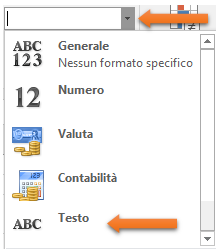 Aprendo questo menu, è possibile selezionare il formato Testo dall'elenco disponibile.
