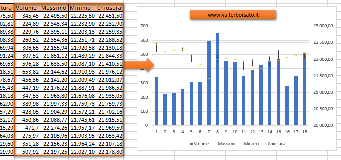 [4] - Grafici azionari Excel: Volume-Massimo-Minimo-Chiusura