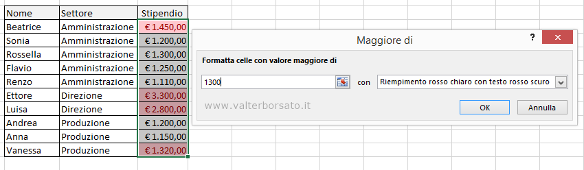 Uguale a… Applica la formattazione alle celle